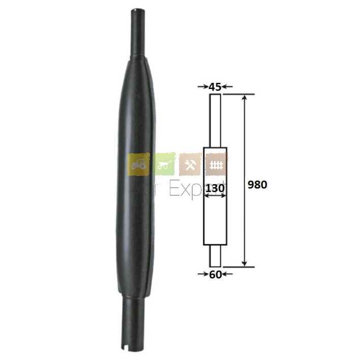 Silencieux vertical pour pipe diamètre 60 mm, longueur 980 mm, sortie diamètre 45 mm