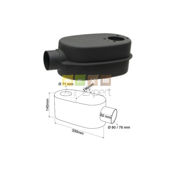 Silencieux d'échappement tracteur Same Antrarès 110, 130, Laser 110, 125, 130, 150, Silver 110, 115, 130, Titan 145, 150, 160, 165, Deutz Agrotrac 110, 125, 130, 150, Lamborghini R1106, R1306, R1506, 135 Formula, Premium 1100, 1300
