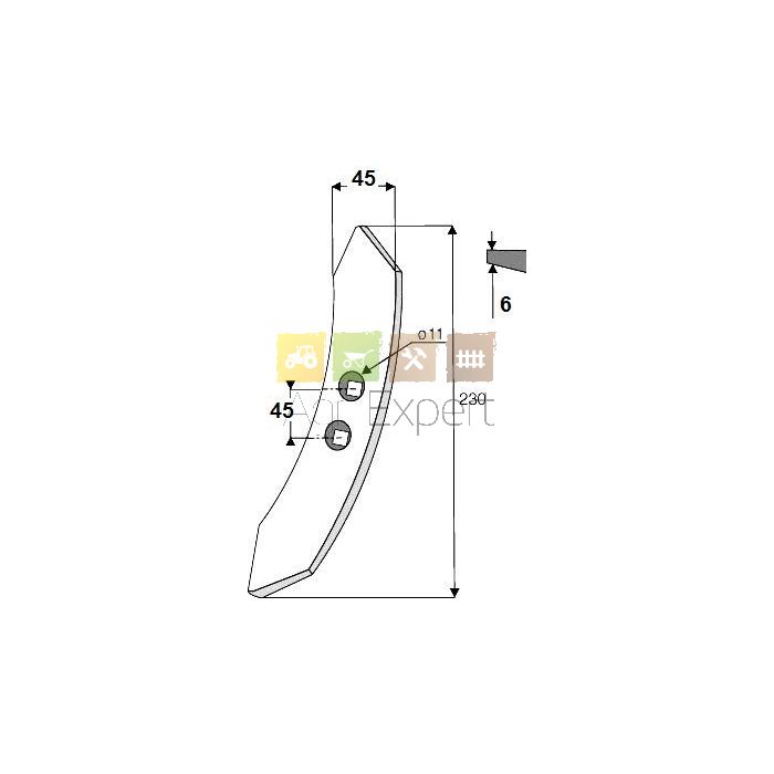 Soc de cultivateur réversible plat 50x8x230 entraxe 45 mm