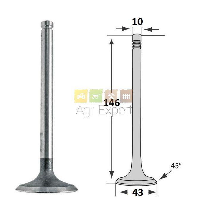 Soupape d'admission moteur Case IH D155, D179, D206, D239, D246, D268, D310, D358, DT239, DT358, DT402