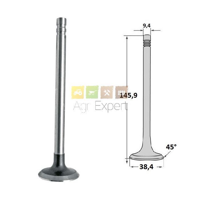 Soupape d'échappement 45° moteur Ford BSD326, BSD329, BSD330, BSD332, BSD333, BSD438, BSD442, BSD444, BSD666 tracteur Ford et tracopelle Ford