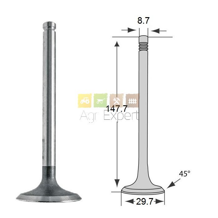 Soupape d'échappement moteur Case IH BD144, BD154 tracteur Case IH 238, B275, 276, 354, 374, 384, 434, B414, 424, 444, Manitou MB, MC