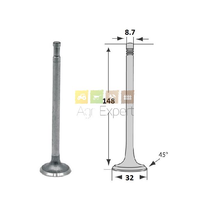 Soupape d'échappement moteur Case IH D-66, D-74, D-99, D-111, D-132