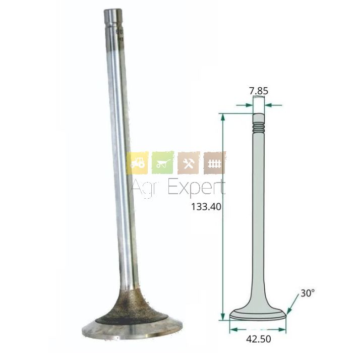 Soupape d'échappement Ø42.50 x 7.85 mm - L133.40 mm - 30° compatible Claas / Renault & John Deere