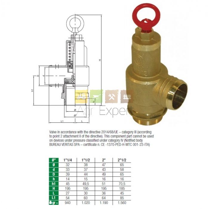 Soupape de sécurité, en laiton, Ø65 avec raccord filetage diamètre 2"1/2 marque MZ