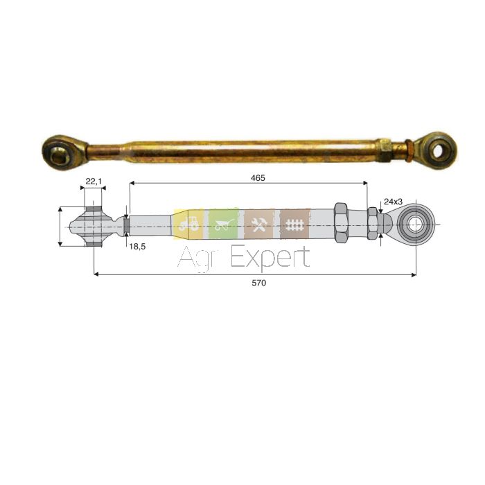 Stabilisateur rigide mécanique Ø 22.5 - longueur 570 / 685 mm - fut 465 mm - filetage 24x3 mm
