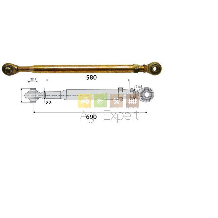 Stabilisateur rigide mécanique Ø 22.5 - longueur 690 / 805 mm - fut 580 mm - filetage 24x3 mm