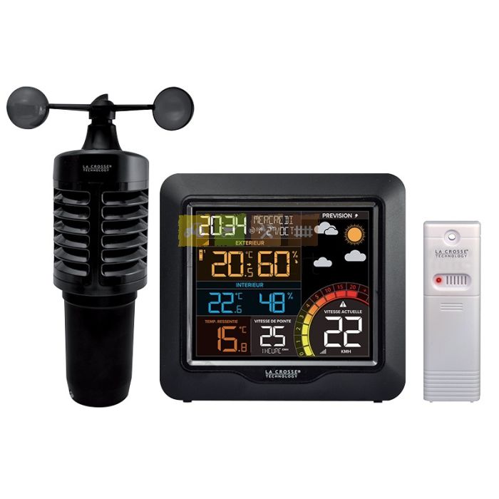 Station météo avec 2 capteurs, Indicateur de tendance des prévisions météo,température et hygrométrie intérieure et extérieur, vitesse du vent