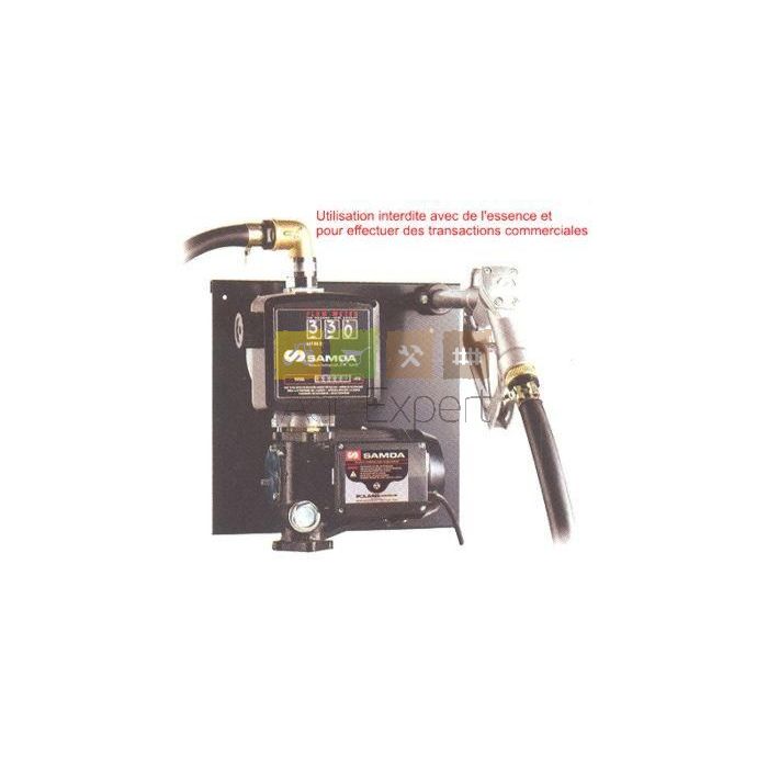 Station murale gazole avec pompe 500W et 70 l/min. Electropompe auto-amorçante monophasée. protection IP 55. hauteur d'aspiration 2,50 m maxi. équipée d'un by-pass. interrupteur marche/arrêt, câble 2 m avec fiche. filtre à particules intégré facilement accessible pour le nettoyage. entrée et sortie fluide 1'' g femelle avec bride. compteur mécanique 3 chiffres, corps alu. flexible de refoulement en caoutchouc antistatique 4 m. crépine et raccord pour flexible d'aspiration (flexible non fourni).