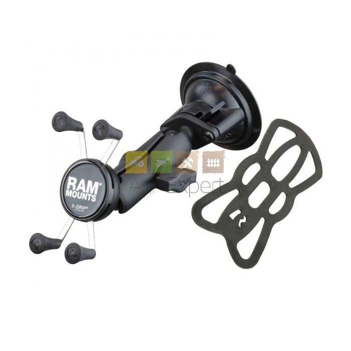 Systèmes de support RAM MOUNTS X-Grip pied à ventouse à dépression avec bras de liaison 93 mm, 4 doigts de maintien en caoutchouc.
