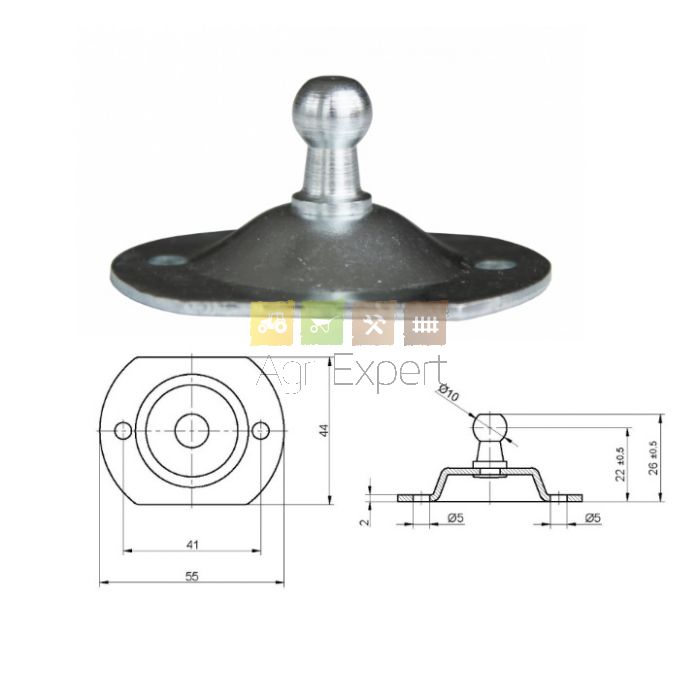 Support vérin à gaz entraxe 41 mm avec boule Ø10 mm, Acier zingué. utilisation Cabine, Capot, remorque, tracteur, Camping-car, Presse, camion...