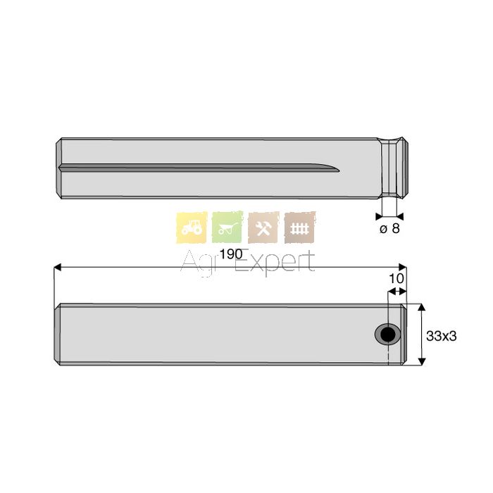 Tige filetée longueur 190 mm filetage M33 x 3 mm pas à gauche