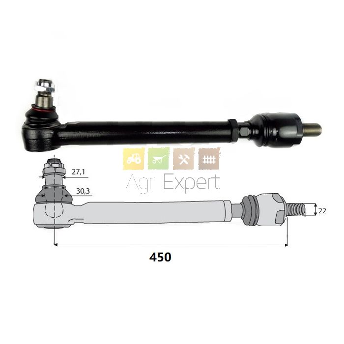 Tirant de direction complet longueur 450mm filetage M22x1.5 - cône 27,1/30,3 mm