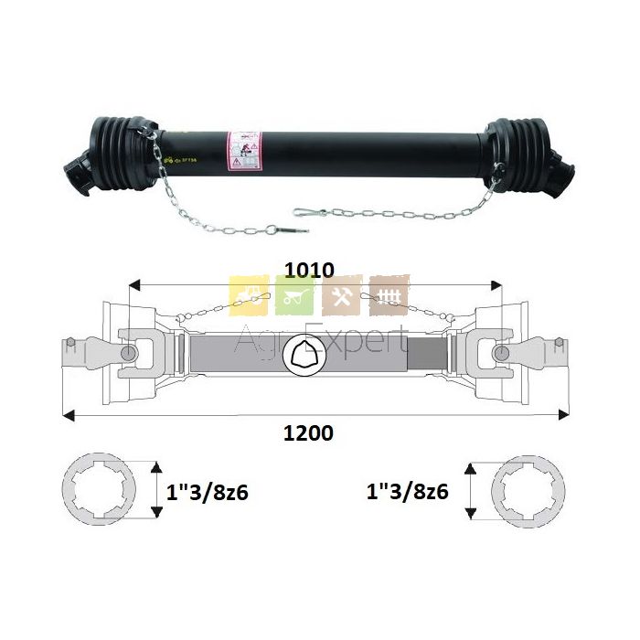 Transmission à cardan B6 avec sécurité boulon 2500Nm machoire 1 3/8" 6Z longueur 1.2 mètre croisillon de 30.2x92 mm pour machine agricole G7