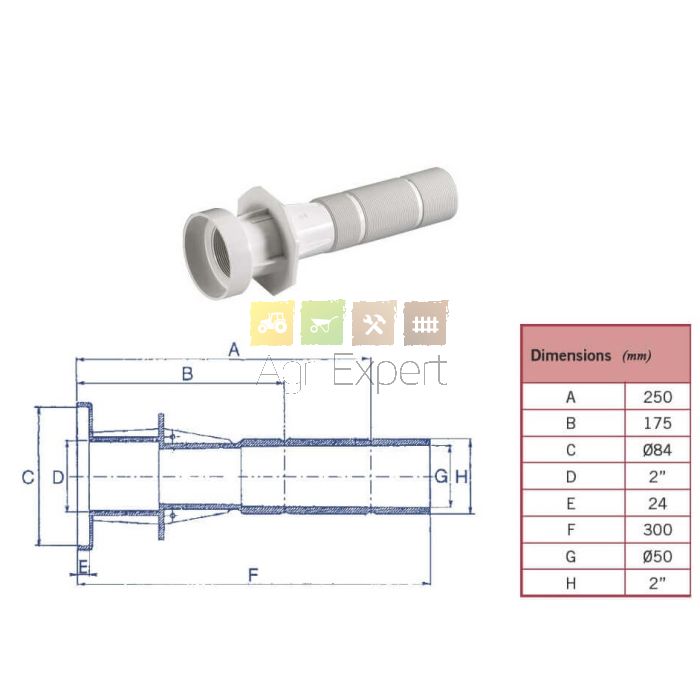 Traversée de paroi pour piscine béton Liner, PVC armé longueur 300 mm, pour tuyau PVC ø 50 mm ASTRALpool