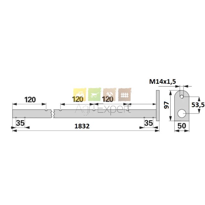 Tube porte dents 1832 mm pour pickup de presse roud baller Gallignani 2120, 2200, 2500/L
