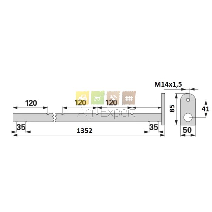 Tube porte dents 1352 mm pour pickup de presse roud baller Gallignani