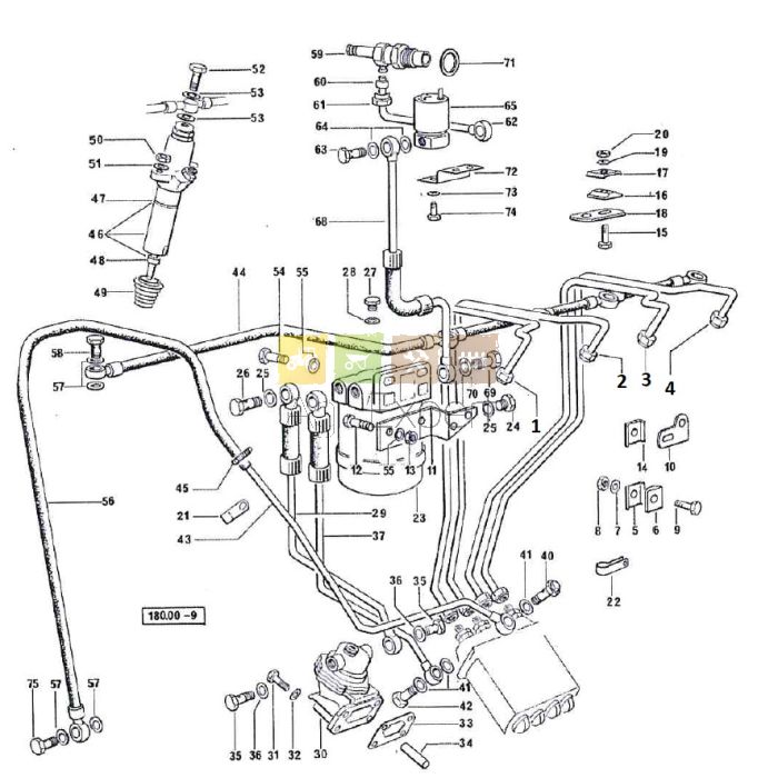 Tuyau d'injecteur N°1 moteur Same 1054P tracteur Centurion 75, Laser 85, Leopard 85, Mercury 85, Saturno 80 Lamborghini C754, C784, R784, R854