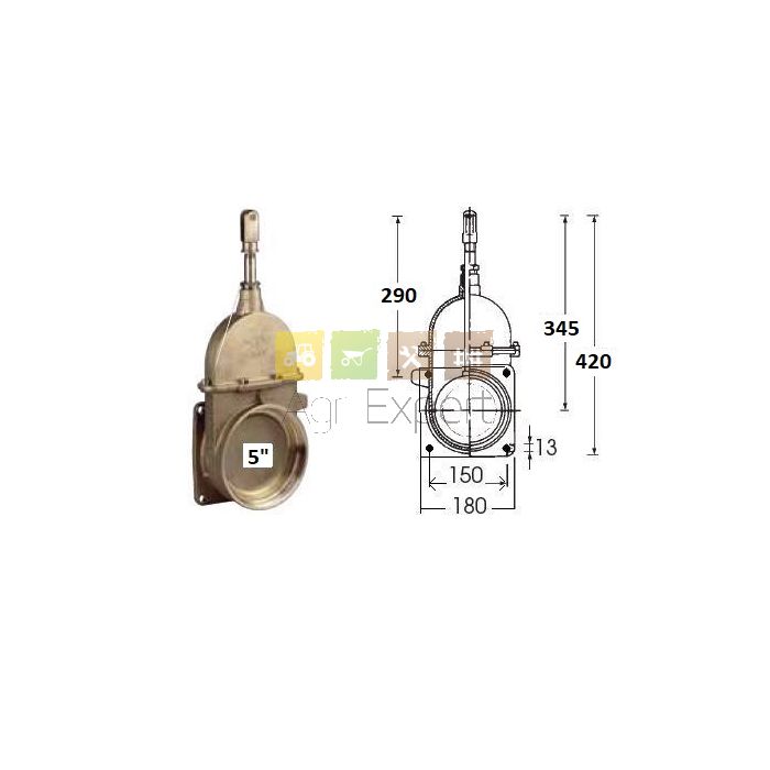 Vanne bronze pour tonne à lisier bride 4 trous filetage femelle 5" 120 mm