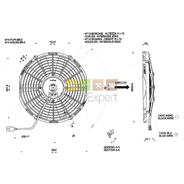 Ventilateur Axial VA09-AP8/C-27A ventilateur Aspirant 12 volts helice 10 pales diamètre 280 mm débit 1280 m3/h, SPAL 3010.0364, VA09AP8/C27A