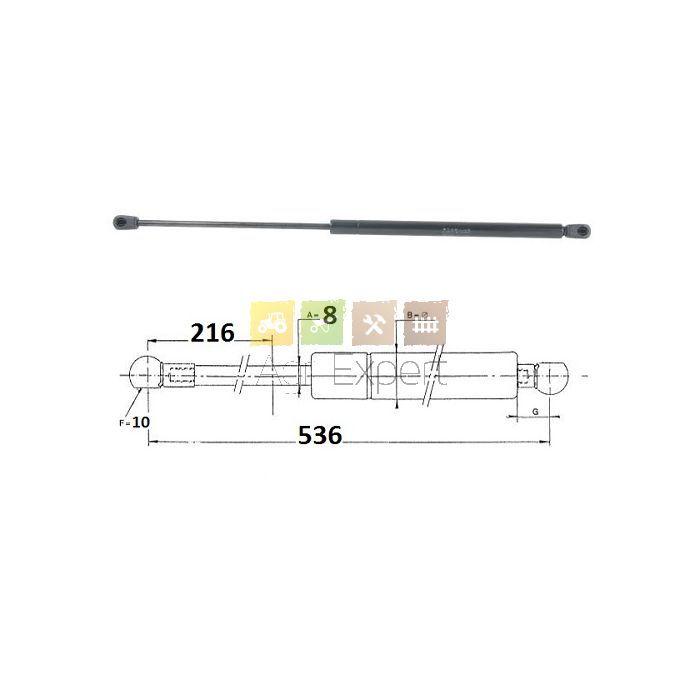 Vérin à gaz pour pare-brise ou vitre arrière cabine de tracteur Deutz-Fahr