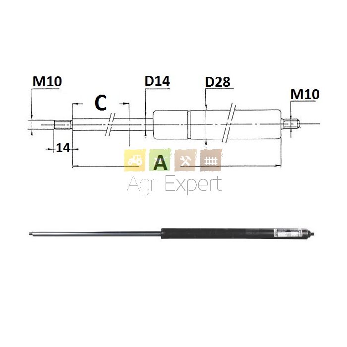 Vérin à gaz renforcé tige14mm filetage M10 universel Stabilus