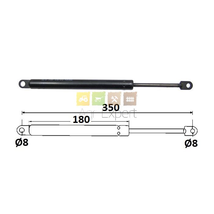 Vérin à gaz Stabilus 2 chapes 170/350 mm, 50 Newton application Merlo Multi-Farmer 30.6