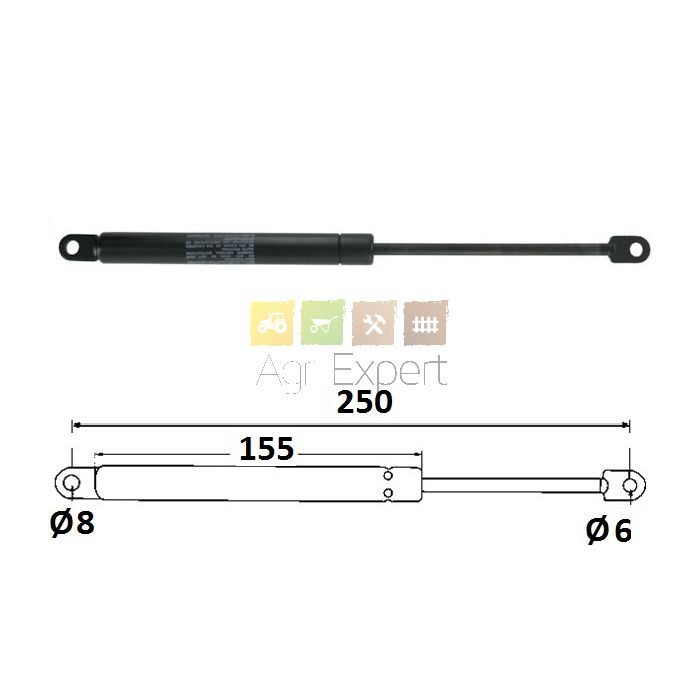Vérin à gaz 2 chapes 250 mm, 180N