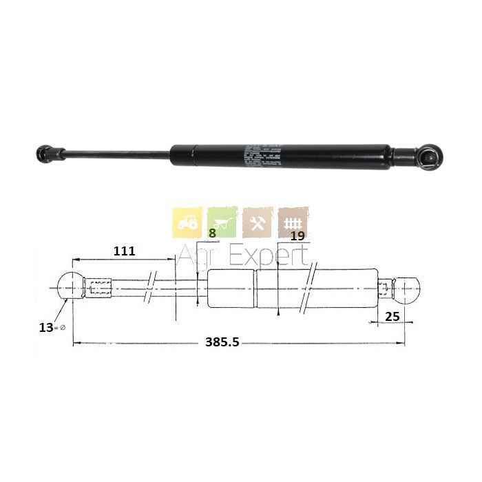 Vérin à gaz de porte longueur 385 pour rotule diamètre 13 force 400 NM