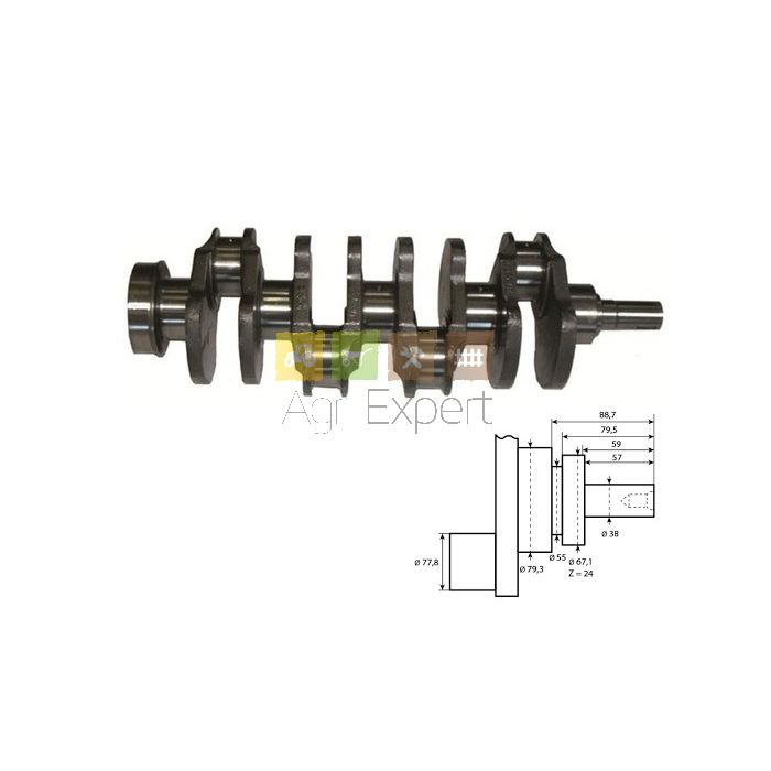 Vilebrequin forgé 79.35 moteur John-Deere 4045D, 4045T PowerTech, tracteur John-Deere 3300, 3300X, 3210, 3210X, 3310, 3310X, 6100, 6100SE, 6400, 6400SE, 6510, Renault Cérès, Arès