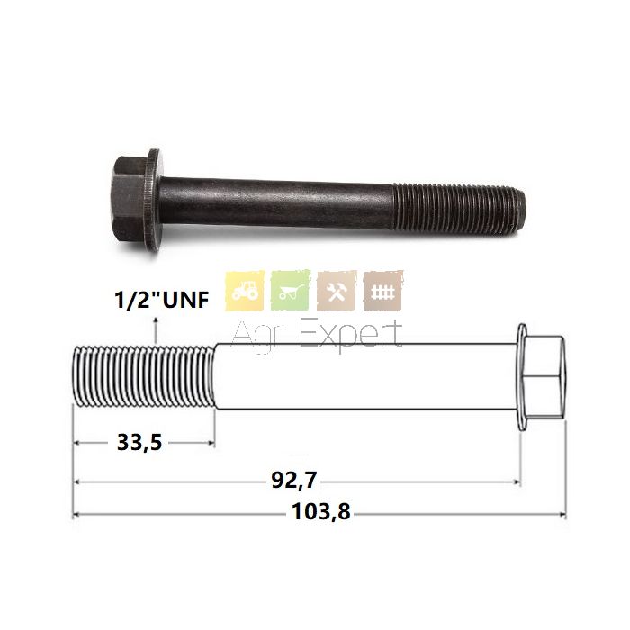 Vis de culasse 1/2"x92,7 moteur Perkins A4.236, A6.354, AT6.354, AT6.354.1, A6.372, 1004.4T, 1004.40, 1004.40T, 1006.6, 1006.6T, 1006.60, 1006.60T, Massey-Ferguson et Claas
