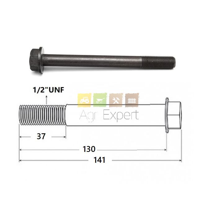Vis de culasse 1/2UNF X 130 moteur Perkins 1004-40T, 1006-60T, 1004-40TW, 1006-60TW, 1006-6TW, 1004-4, 1004-4T, 1006-6T, 1006-60TA, T4.236, 4.41, 1004-40, 1006-60, 1004-40S, 1106C-E60TA, tracteur Massey-Fergsuon, Landini, McCormick, Hitachi, JCB