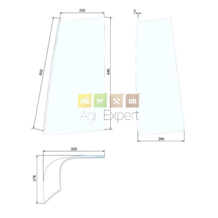 Vitre de coin gauche cabine XL tracteur Case IH 743XL, 745XL, 844XL, 845XL, 856XL, 955XL, 956XL, 1055XL, 1056XL, 1255XL, 1455XL, 3220, 3230, 4210, 4220, 4230, 4240, 495XL, 595XL 695XL, 795XL, 895XL, 995XL