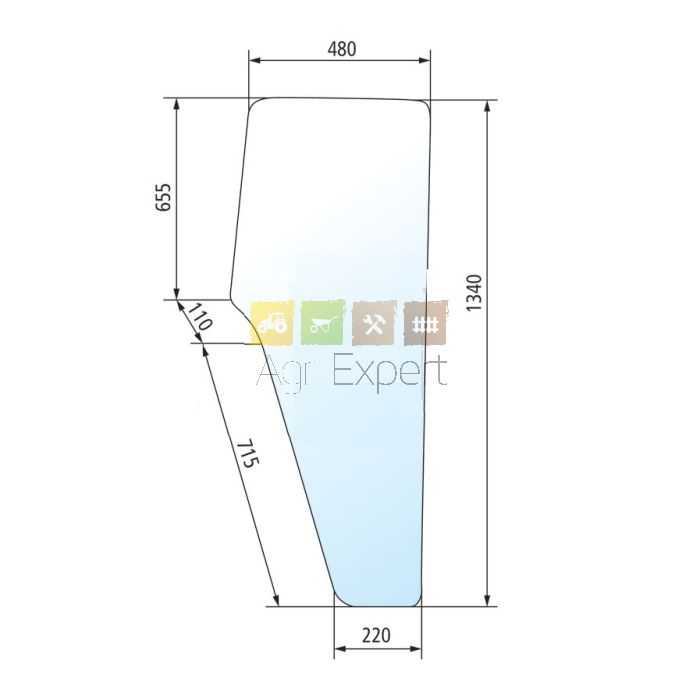 Vitre de porte cabine ET33.5, ET33.6 tracteur Renault 461S, 521S, 551S, 551-4S, 651S, 651-4S, 681S, 681-4S, 751S, 751.4S, 55-14, 65-14