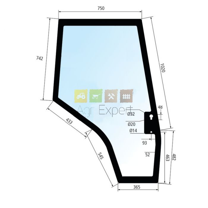 Vitre de porte gauche tracteur Massey-Ferguson 4225, 4235, 4240, 4245, 4255, 4260, 4265, 4270, 4315, 4320, 4325, 4335, 4345, 4355, 4360, 4365, 4370