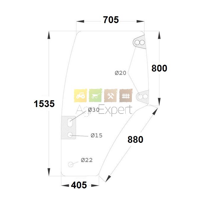 Vitre de porte New-Holland T, TS, TM, TLA,Case MXM, JX, JXU Fiatagri M.