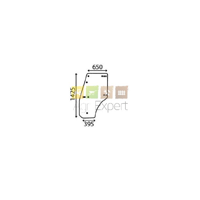 Vitre de porte tracteur Massey-Ferguson 354F, 354S, 354V, 364F, 364S, 364V, 374F, 374S, 374V, 384F, 384S, 384V, 394F, 394S, 394V Landini