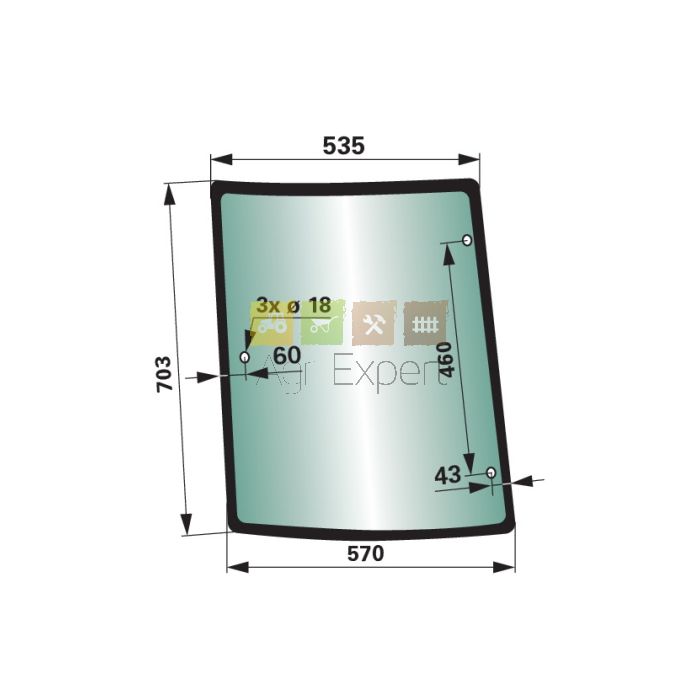 Vitre latérale gauche tracteur Case IH Farmall 110A, 120A, 125A, JX55, JX60, JX65, JX70, JX80, JX85, JX90, JX95, TD55D, TD65D, TD75D, TD85D, TD95D, TD5010, TD5020, TD5030, TD5040, TD5050, TS6020, TS6030
