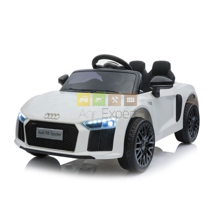 Voiture electrique enfant AUDI R8 Blanche avec pneu gomme, Télécommande parentale 2,4 Ghz, Démarrage progressif
